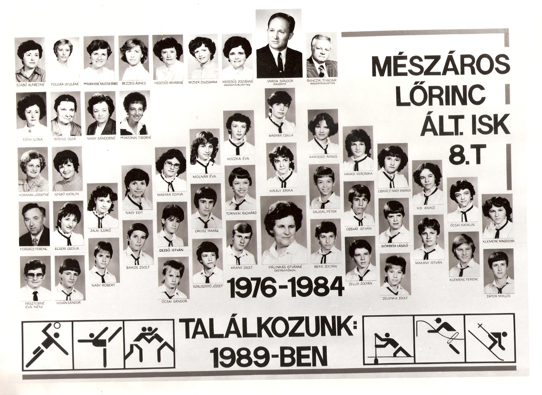 1976-1984 8.t Nagy méretű kép Osztályfőnök: Pálinkás Istvánné |