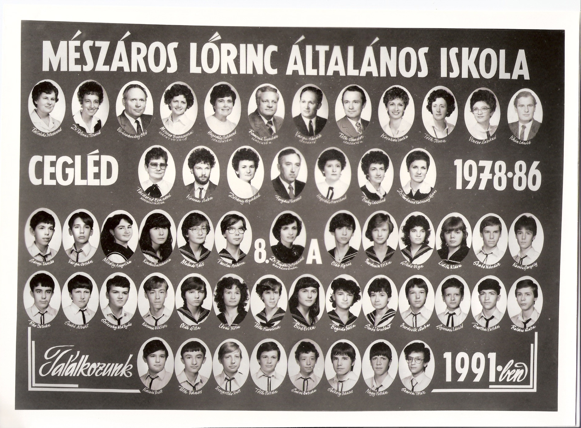 1978-1986 8.t Nagy méretű kép Osztályfőnök: Herczeg Károlyné |
