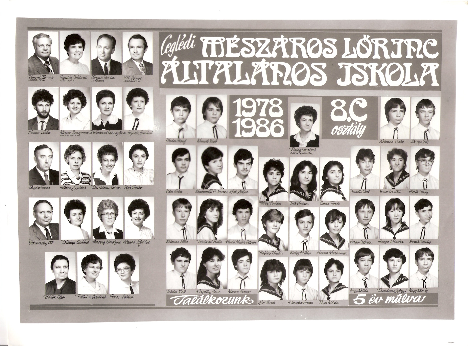 1978-1986 8.c Nagy méretű kép Osztályfőnök: Balog Lászlóné |