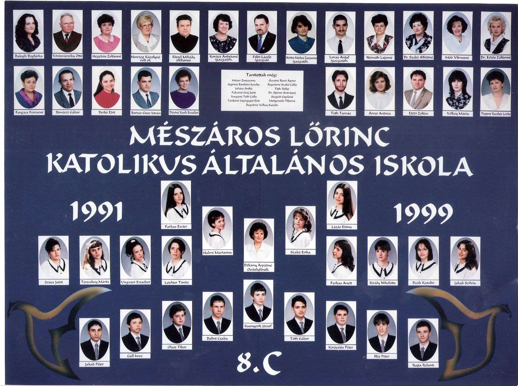 1991-1999 8.c Nagy méretű kép Osztályfőnök: Dékány Árpádné |