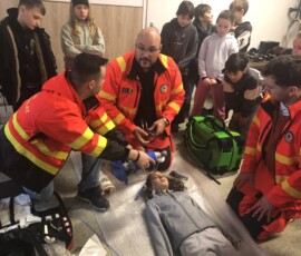 A 4.b osztály meglátogatta a Ceglédi Mentőállomást 02. 20-án. Köszönjük Pálfalvi Róbertnek és munkatársainak, hogy megnézhették a gyerekek a mentőautó belsejét, gyakorolhatták az újraélesztést, kipróbálhatták milyen betegeket szállítani és bepillanthattak a mentősök áldozatos, nagy szakértelmet igénylő, fizikailag és pszichésen is megterhelő munkájába.