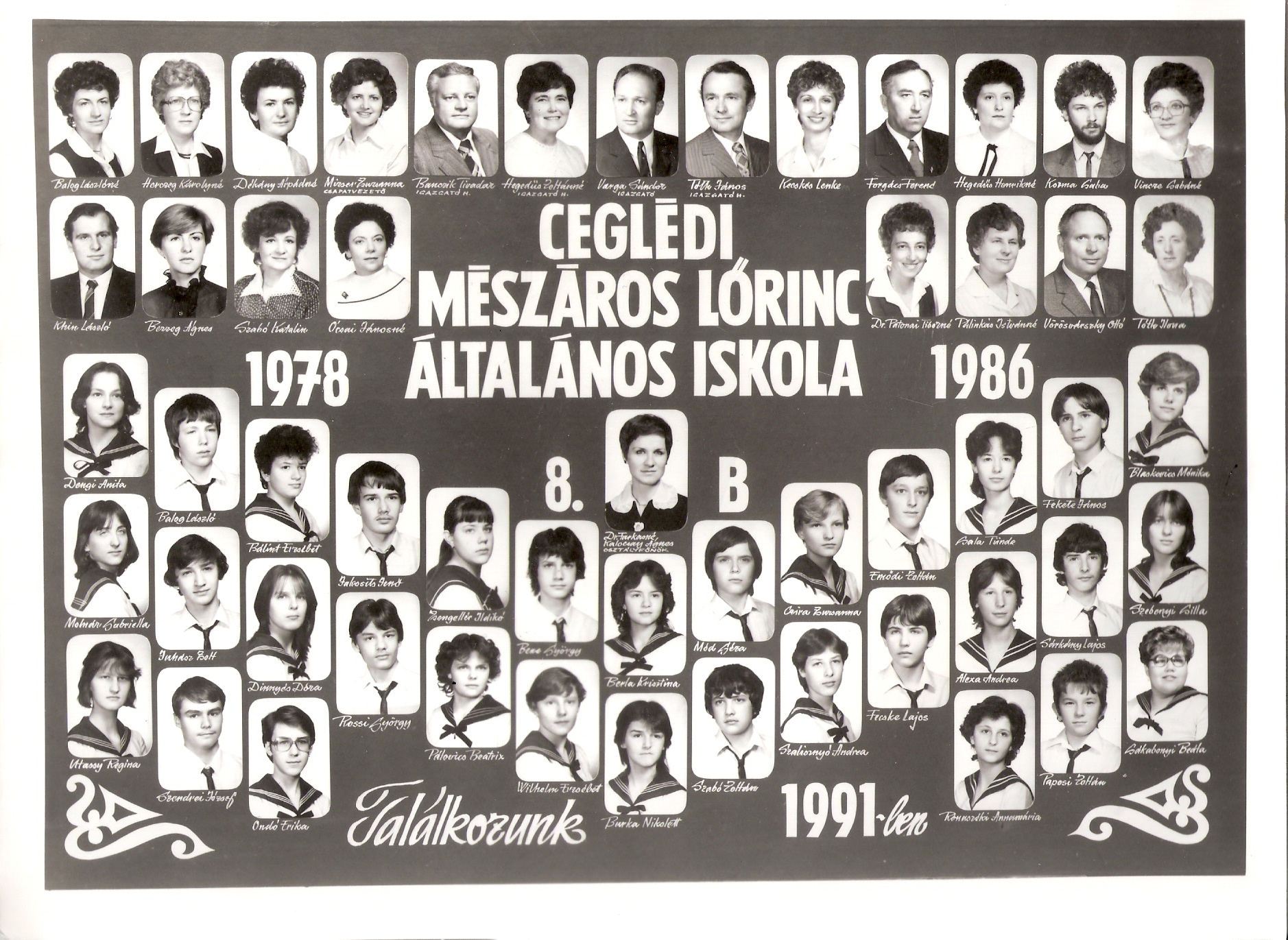 1978-1986 8.b Nagy méretű kép Osztályfőnök: Dr Farkasné Kalocsay Ágnes |
