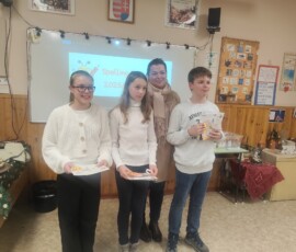 Versenyzőink egyike sem távozott üres kézzel; emléklapot, íróeszközt, radírt és egy kis édességet mindenki kapott, a dobogósok pedig oklevelekkel, jegyzetfüzettel, plakátokkal és értékes idegen nyelvi könyvekkel lettek gazdagabbak.