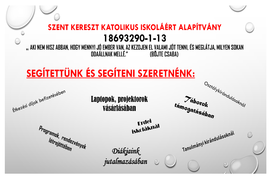 2021. november 30-án sok-sok év várakozás után, örömmel vették birtokba iskolánk felsős tanulói, az „A” emeleti ÚJ mosdókat. Tanulóink szavai: „Végre gusztusos a mosdó! Van meleg víz is. Be tudjuk zárni az ajtót és nem kell őrt állnunk.Fényesség és nyugalom van, valamint klassz a tükör is. Hála Istennek, hogy már az emeleten is van mosdó!”