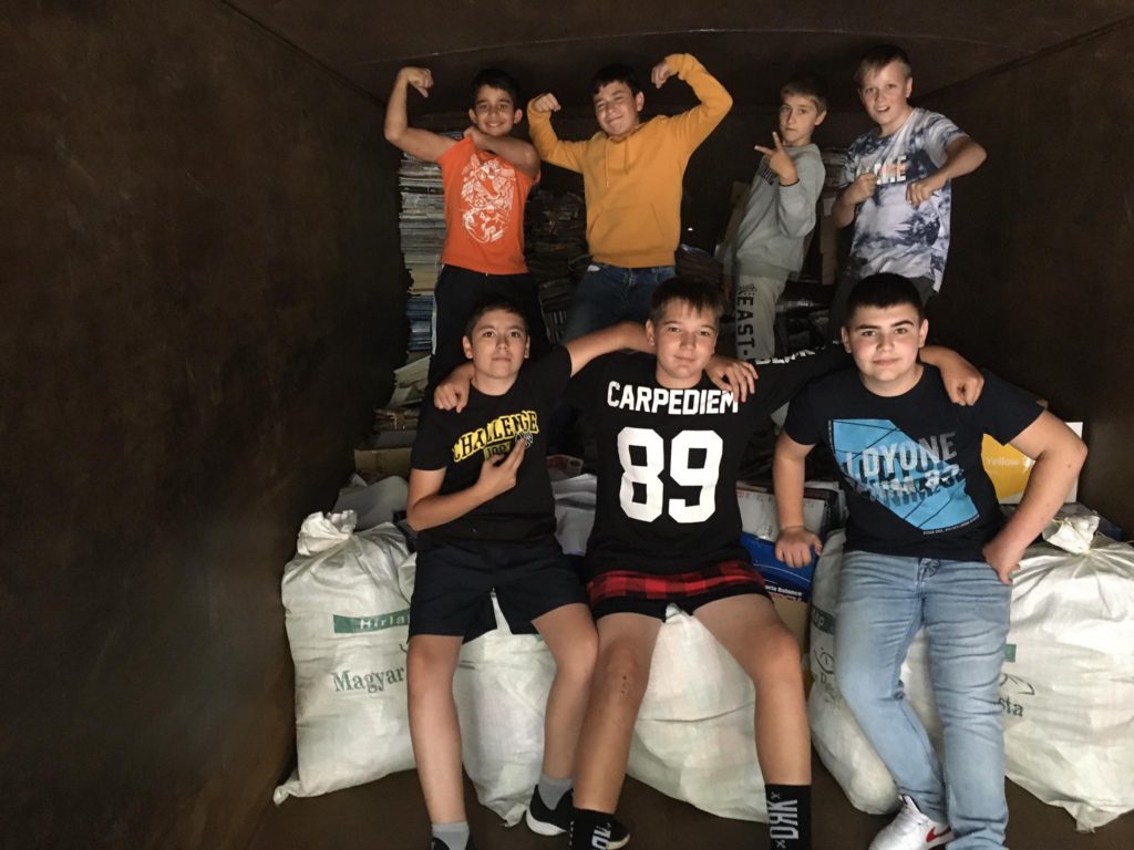 Már a gyerekek nem járják a várost hulladékért kutatva, mert az veszélyes dolognak számít, de az iskola udvarán igazán kitettek magukért: pakolták, mérték, taposták a papírt, mikor mire volt szükség.