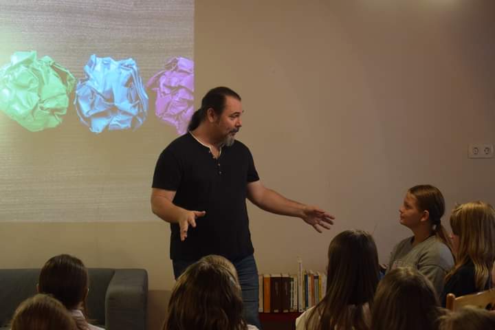 Szeptember 14-én rendhagyó könyvtári órán vehettek részt iskolánk 6.a és b osztályos tanulói. Kovács Attila, írói álnevén Holden Rose várta a gyerekeket egy különleges előadásra. A mostani rendezvényre nem könyvajánlóval, hanem olvasás népszerűsítő programmal készült. Sok humorral fűszerezett, ugyanakkor igen elgondolkodtató műsora maradandó élményt jelentett a diákoknak és tanáraiknak egyaránt. Lebilincselő gondolatmenettel jutott el az olvasás fontosságától a helyesíráson, szövegértésen, szókincsfejlesztésen, a fantázián át még a sporthoz is.