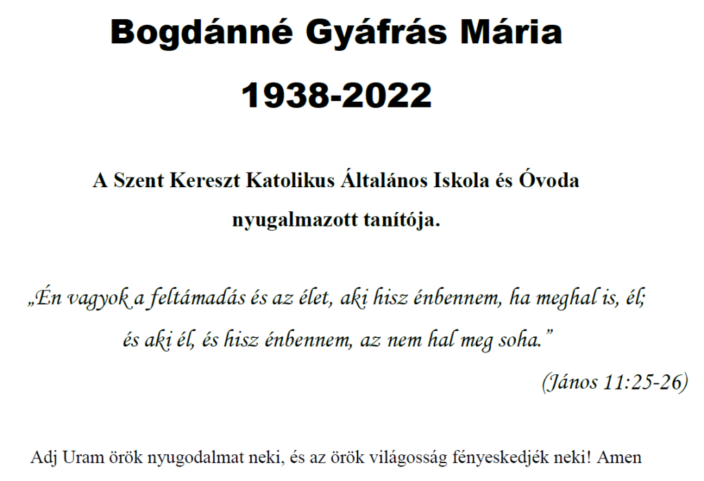 Bogdánné Gyáfrás Mária